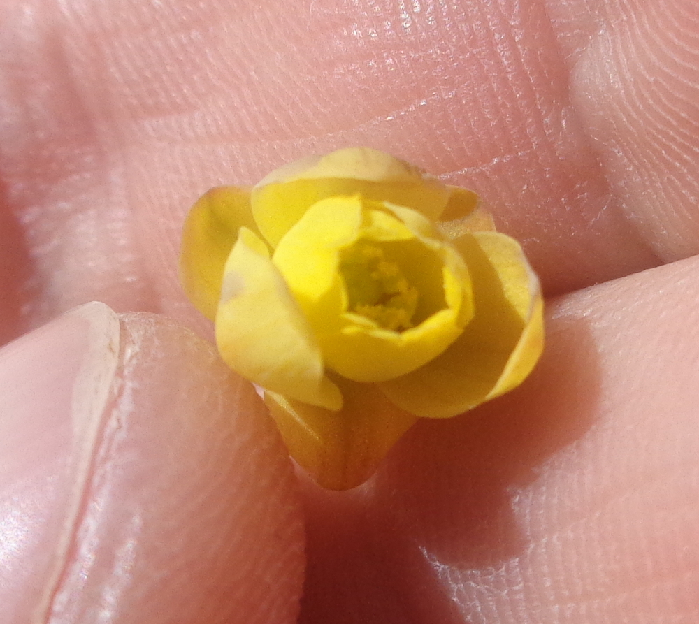 Üblicherweise grabe ich zur Bestimmung natürlich keine Pflanzen aus. Aber manchmal treibt mich die blanke Neugier. Aus aufgeschnittenen Mahonienwurzeln tritt also gelblicher Saft aus. Ausprobiert, stimmt und dann wissen wir das.
