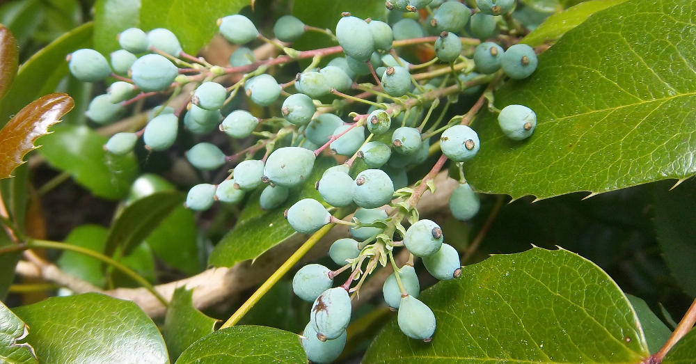 Die Mahonienernte ab August ist immer wieder eine kleine, garstige Freude. Auf dem Spielplatz gegenüber wachsen die Biester als dichtes Buschwerk neben dem Sandkasten. Jahrelang erklären die besorgten Eltern ihrem Nachwuchs, dass sie von diesem Strauch nichts naschen dürfen.